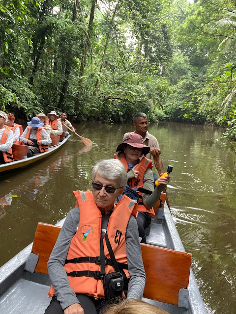We start Early morning with a canoe ride to look for birds and monkeys - squirrel monikers , sockey monkeys,and lots of birds. We then come back for a walk through the area. We find a coco orchard! Ecuador is a big exporter of chocolate. more on that later.